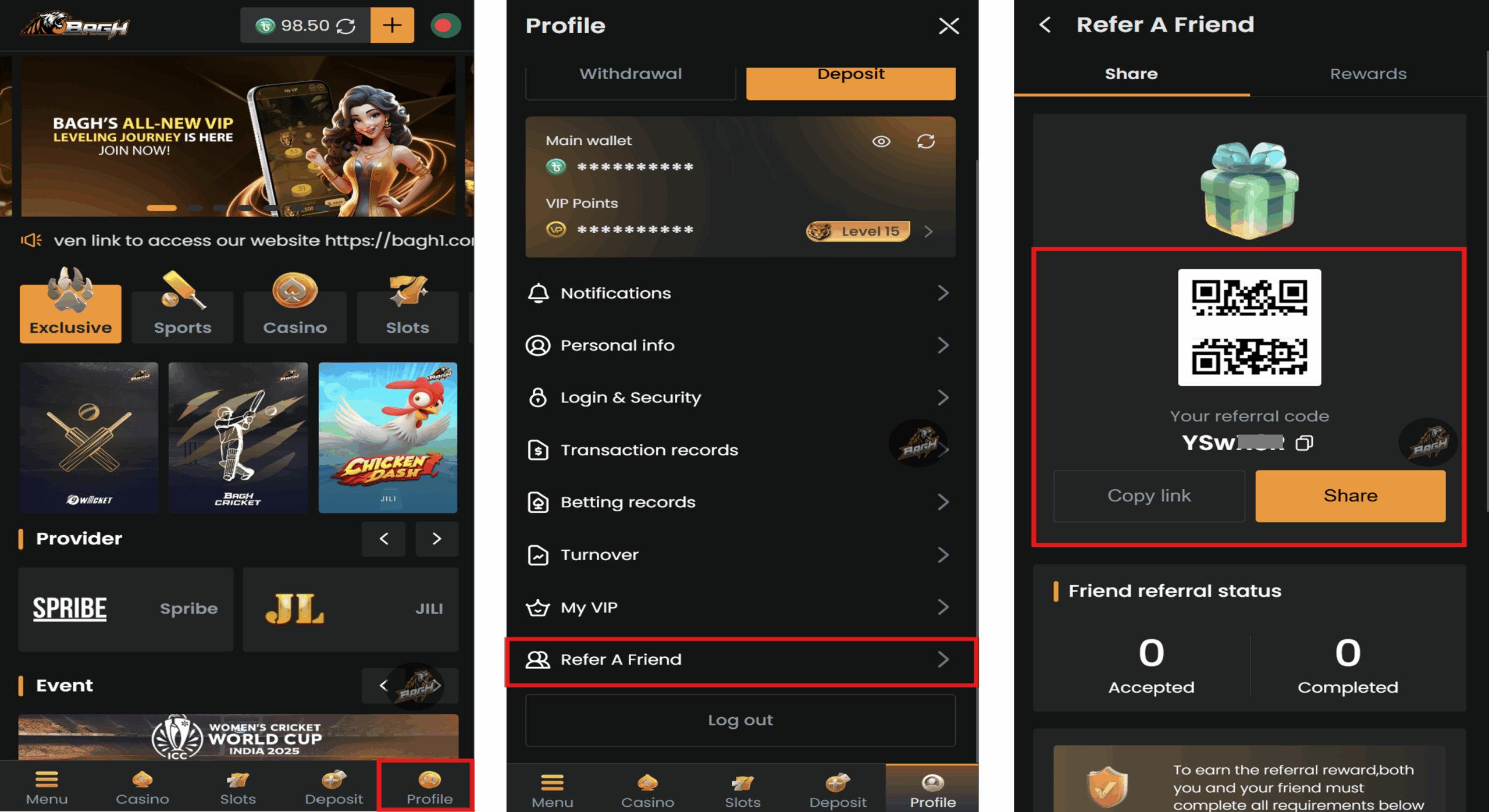 Step 2: Select ‘My Referral’ button under the Profile section.