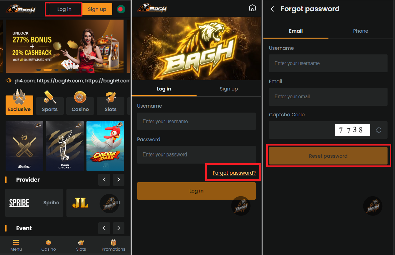 - BAGH হোমপেজে যান এবং ‘লগ ইন’ বোতামে ক্লিক করুন।